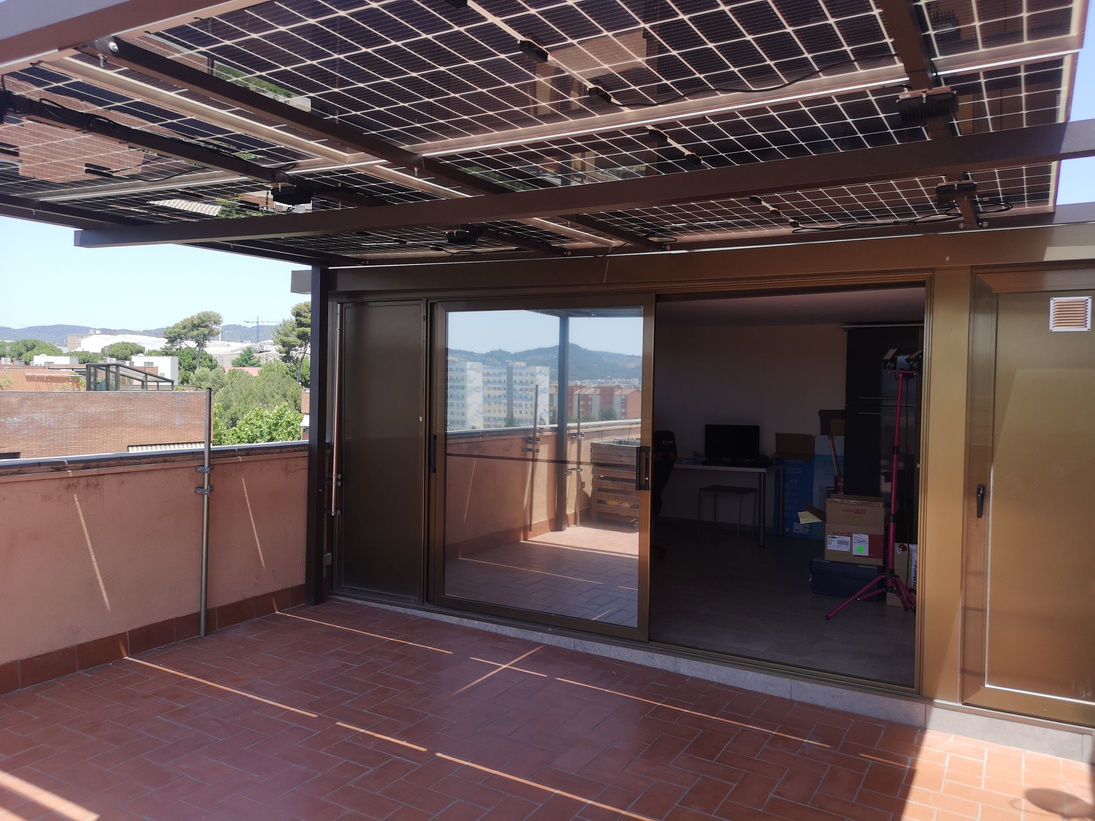 Consisteix a instal·lar panells solars a la coberta de l'edifici per generar electricitat mitjançant una font d'energia il·limitada i 100% renovable com és el sol, i repartir-la als veïns que hi participin.